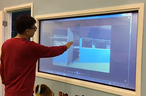 調光玻璃(霧化玻璃)具備良好的投影顯示性能,在玻璃霧化狀態下,配合高清投影機,背投出精彩清晰畫質,更可加入觸控設備,實現手指觸控屏幕操作。